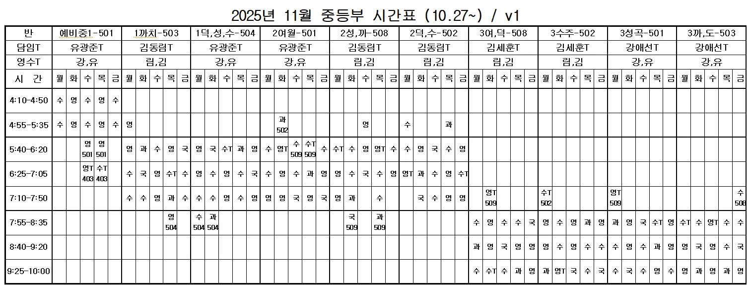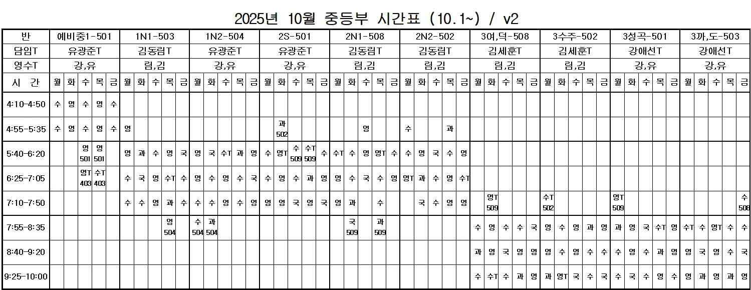 10월1일 이후 적용되는 시험대비 시간표입니다.