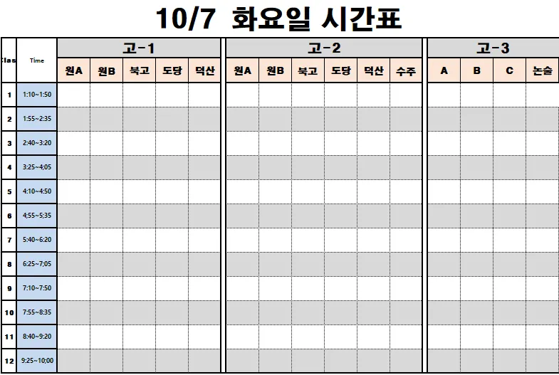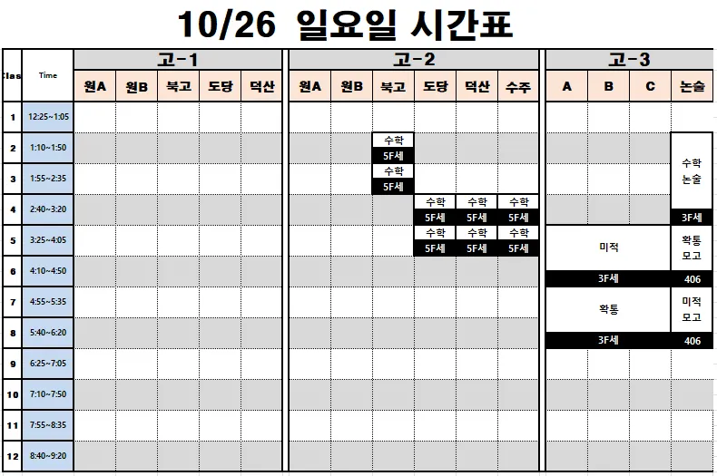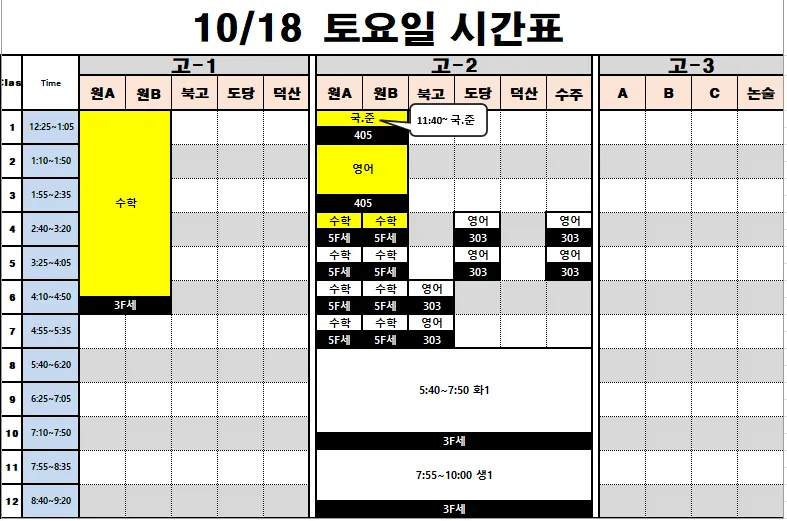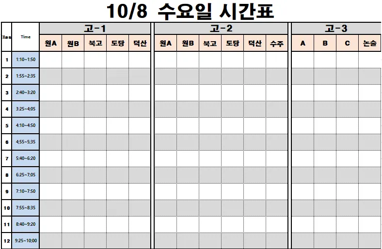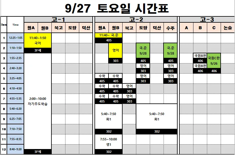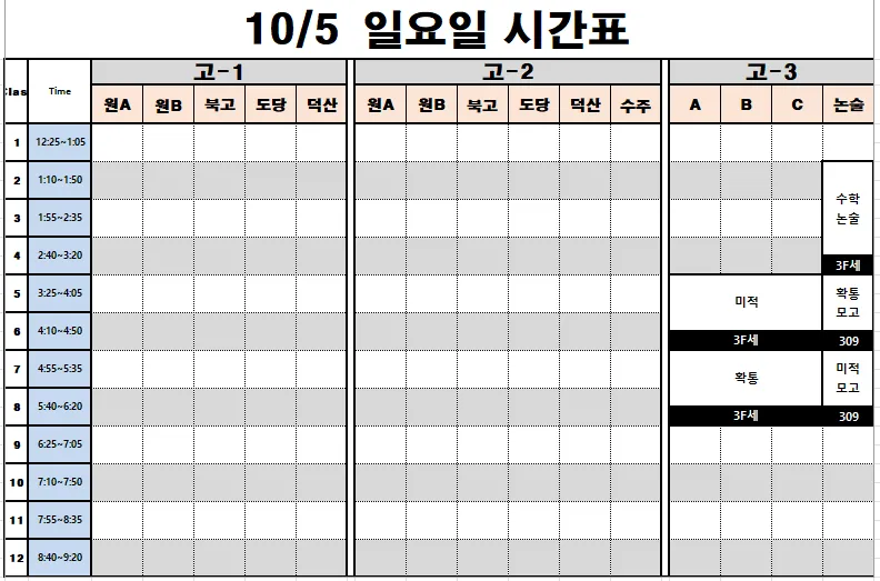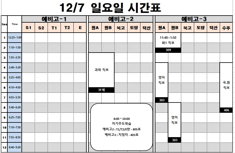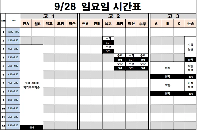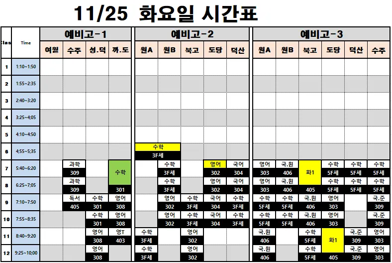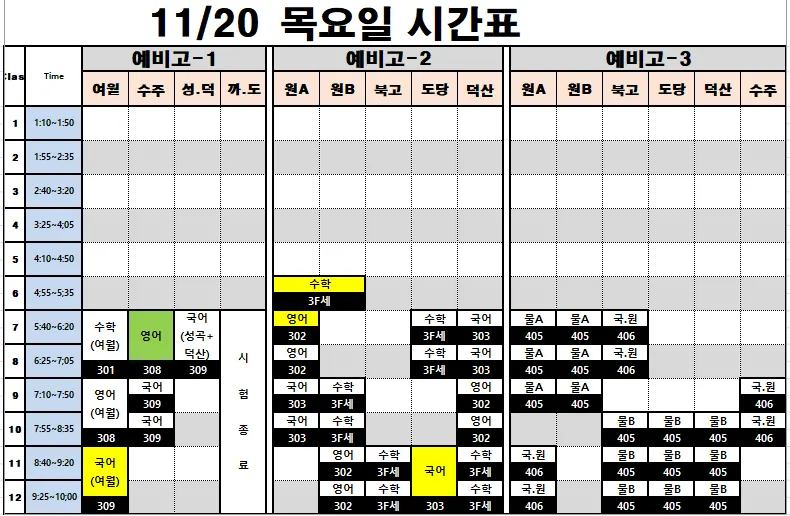 예비고1(중3) / 예비고2(고1) / 예비고3(고2) 로 시간표 변경되었습니다.