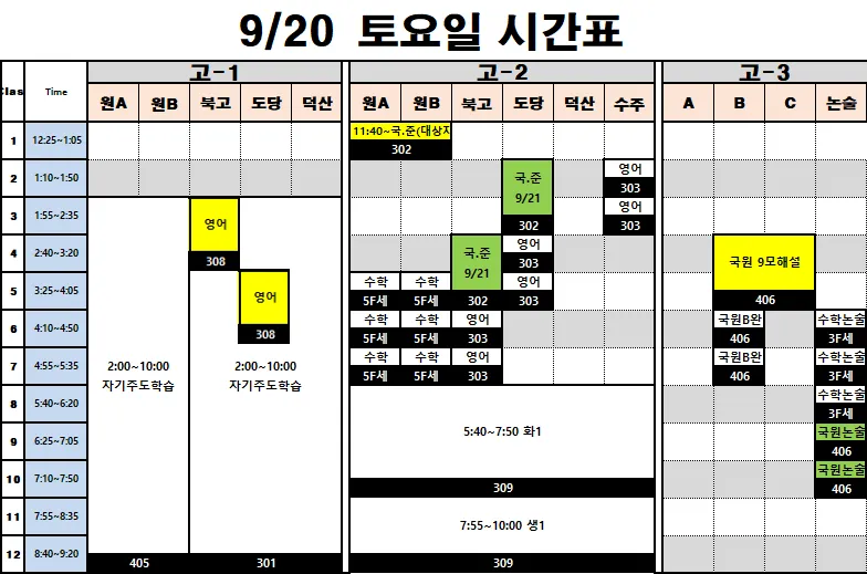 9월20일~9월21일(토~일요일) 주말시간표-수정(9/19기준)