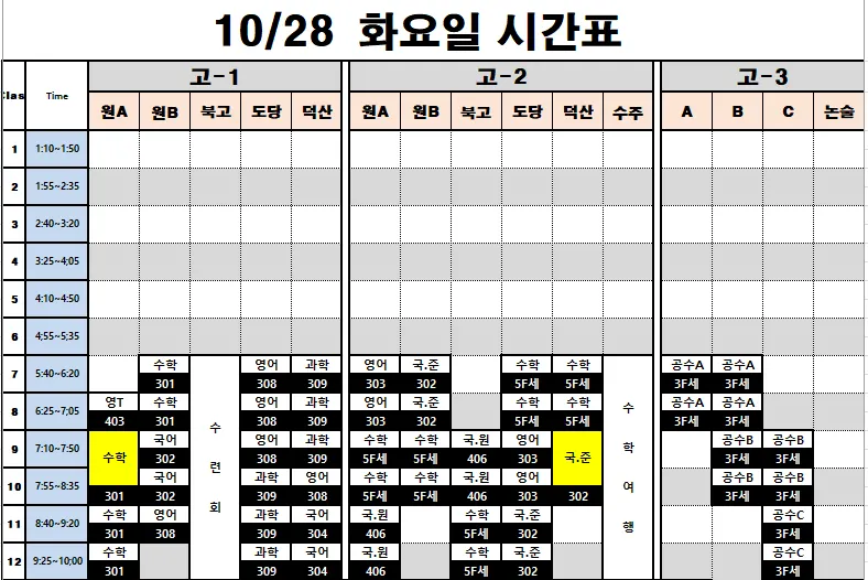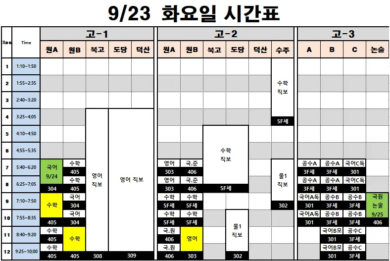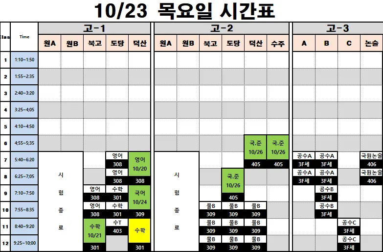시험대비로 학교별 보충시간 잘 확인바랍니다.