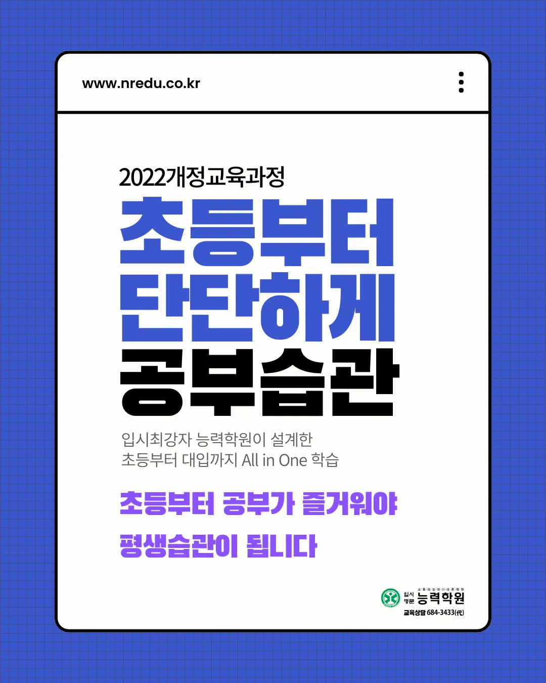 입시의 최강자 능력학원이 초등부터 대입까지 흔들리지 않는 '단단한 공부 습관'을 만들어드리기 위해 초등부 선행과정반을 야심 차게 오픈합니다!